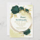 Belo convite de aniversário com flores verdes esmeraldas e folhas de ouro. PARA MAIS PRODUTOS CORRESPONDENTES, consulte a coleção acima ou entre em contato comigo