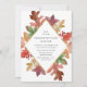 Celebrar a Ação de Amizade em estilo com estas folhas rústicas do outono jantam convites. O design destaca os detalhes do evento enquadrados em folha de ouro falsa, cercada por folhagem de queda de cor d'água em tons sazonais quentes de marrom, verde, burgundy, ferrugem, amarela, laranja e número queimado. A parte de trás apresenta um fundo de burlagem sólido para um acabamento clássico. Perfeito para jantas de Ação de Amizade, reuniões de Ação de Graças ou festas de outono aconchegantes.