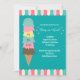 O gênero do tema do sorvete bonito revela convites de festas em brasa para o menino ou menina - Brilhante, festivo sorvete pastel parlor awning design em cima em baixo, em rosa, chato e amarelo. Uma sobremesa de sorvete de biscoitos doces e jumbo com cone de waffle em chalé, rosa, amarela e marrom é apresentada e lê 'Get the Scoop!' em letras brancas. As informações personalizadas da parte incluem detalhes de RSVP personalizados. A parte de trás tem um plano de fundo sólido. O gênero festivo revela convites, perfeitos para o verão, prontos para serem personalizados com seus próprios detalhes de chá de fraldas. Temos mais convites de festas no nosso compro Zazzle.com/angela65.
