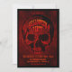 Convite de festas escuro feito sob encomenda do Dia das Bruxas do crânio. Olhar da textura do Grunge com beira preta. Cor vermelha do sangue carmesim profundo com acentos alaranjados. Gráfico Menacing do crânio com o texto do "partido Dia das Bruxas." Legal e amedrontando a festança vermelha e preta do Dia das Bruxas convide.