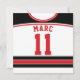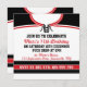 Personalize a parte traseira do convite com sua escolha do nome e do número do jérsei (idade). A parte dianteira do convite é ao estilo de um jérsei do hóquei completo com o colar e o laço. Você pode mudar a cor do fundo, apenas clique "PERSONALIZA".