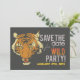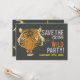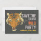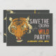 O partido temático do animal selvagem convida com um tigre feroz no cobrir visto que o tigre assustador eyes olhar fixamente no leitor na parte traseira para meninas. O excelente convida para partidos temáticos do animal ou da floresta!