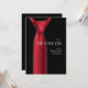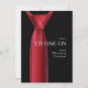 Um cartão de pedido de padrinho elegante com uma gravata vermelha, com um nó Windsor, contra uma camisa preta. (Vctz)<br/>() O cartão é fácil de personalizar com sua redação, fonte, cor da fonte e escolha de seis tipos de papel.<br/>() Não é exatamente o que você está procurando? Todos os nossos produtos podem ser personalizados para atender às suas necessidades sem custo adicional.<br/>() Basta entrar em contato conosco em askpixieprints@aol.com.<br/>() Produtos coordenados disponíveis: