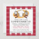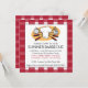 Convide seus amigos e família a um CHURRASCO exterior este verão com este convite bonito. Este convite do piquenique do divertimento caracteriza o chapéu e os weiners de um cozinheiro chefe no gráfico das ferramentas do cozinhar assim como um guingão vermelho do país ou um fundo modelado xadrez do quadro e do verso. Diversos campos customizeable do texto permitem que você personalize-o para serir toda a ocasião - excelente para festas de aniversário, reunions, e quaisquer assados da ocasião.
