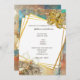 Apresentando uma bela mistura de tons de azul aguarela, laranja, dourado falso e marrom que se misturam em uma ilustração vintage de um polvo amarelo mostarda rastejando ao longo de um fundo marinho que tem coral laranja e marrom bonito e leitos de areia dourada com bolhas vibrantes. Baseado em um tema náutico de criaturas marinhas, o fundo tem tons de tinta líquida riscada que se assemelham às marés e ondas do oceano, sobre o qual uma moldura geométrica dourada com um revestimento branco tem um modelo para a sua declaração personalizada da ocasião especial que você está celebrando. Este design gráfico elegante e sofisticado é ideal para todas as ocasiões especiais com tema subaquático, oceano, costa e praia. Personalize os modelos para se adequar ao seu evento.
