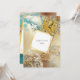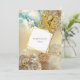 Com uma bela mistura de azul de aquarela; laranja; tons de dourado falso e marrom se misturando em uma ilustração vintage de um polvo amarelo mostarda rastejando ao longo de um fundo marinho que tem coral laranja e marrom bonito e leitos de areia dourada com bolhas vibrantes. Baseado em um tema náutico de criaturas marinhas, o fundo tem tons de tinta líquida listrada que se assemelham às marés e ondas do oceano sobre as quais uma moldura geométrica dourada com um revestimento branco tem um modelo para a sua declaração personalizada da ocasião especial que você está celebrando. Este design gráfico elegante e sofisticado é ideal para todas as ocasiões especiais com tema debaixo do mar, oceano, costa e praia. Personalize os modelos para se adequar ao seu evento.