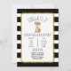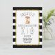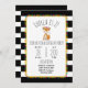 Um convite de aniversário que caracteriza uma ilustração de uma raposa do bebê que veste uma coroa da flor. Personalize o texto. O fundo é listras preto e branco com design do pompom.