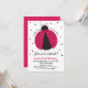 Este design branco bonito apresenta uma joaninha rosa e preta com pontos adjacentes. O texto diz "Uma senhora está virando uma". Personalize este convite para o primeiro aniversário da sua menina. Há muito espaço na parte de trás se você precisar fornecer outras informações como fotos, mapas e direções. Este design também está disponível em vermelho e preto. Se precisar do convite para outro ano (segundo aniversário, 3º, etc.), basta me avisar.