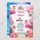 Apresentando "O Luau Fly Pink Flamingo", Piscina de primeiro aniversario do Partido! Mergulhe num paraíso tropical com este design vibrante, com flamingos rosa lúcidos e cores vivas. Celebre o seu primeiro aniversário com uma mistura de diversão ensolarada. Encomenda agora e deixe as festividades tropicais começarem - é hora de criar memórias sob o sol com um convite que promete uma extravagância da piscina!