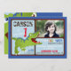 Cartão pré-histórico do convite do aniversário do rex verde bonito e assustador do tiranossauro primeiro.