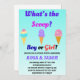 O gênero "What's the Scoop?' revela convite de festas. Este convite dá o tom de um gênero memorável que revela onde pessoas amadas e amigos se reúnem para revelar as emocionantes notícias do gênero do seu bebê. Sinta-se à vontade para personalizar/personalizar este convite ao seu gosto. Aproveite a revelação de gênero!