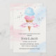 Esse gênero de gliteria giro revela que a placa de convite de festas apresenta balões de aquarela em cor rosa e azul com confete de brilho. O texto diz "Menino ou Rapariga? Qual é o problema" Perfeito para uma festa de revelação de gênero no verão