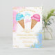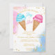 O que é o gênero do sorvete de furo revela cones cor-de-rosa e azuis de ouro e sorvete brilhante ou modelo de convite para raparigas, Simples rosa e azul, guião dourado.