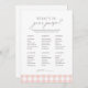 Peça aos chás de fraldas que participem de um jogo de 'O que há na sua bolsa' com este elegante cartão de jogo, com gingham rosa e tipografia de cinza.