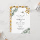 O gênero de bebê com o tema das abelhas revela convites de festas com colmeias amarelas e douradas e Eucalyptus com uma ilustração das abelhas. Personalize com suas informações ou clique em "Clique para personalizar mais" para editar estilos de fonte, tamanho e cores.