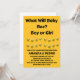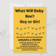 O gênero "What Will Baby Bee?" é muito bem desenhado e revela convite de festas. Este convite dá o tom de um gênero memorável que revela onde pessoas amadas e amigos se reúnem para revelar as emocionantes notícias do gênero do seu bebê. Sinta-se à vontade para personalizar/personalizar este convite ao seu gosto. Aproveite a revelação de gênero!