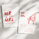 Agora, este é um único — convide seus amigos e entes queridos para o seu grande dia com nosso convite de casamento "MR & MRS" feito de uma só mão. Esta design apresenta uma tipografia divertida e eclética que imita a escrita manual natural, com ilustrações feitas sob medida, perfeita para representar a sua cerimônia de casamento. Esta versão apresenta pop ousadas de vermelho!
