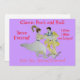 os pares dos dançarinos A do rock and roll dos anos 60 dos anos 50 do convite da dança do rock and roll dos dançarinos do rock and roll dos anos 60 dos anos 50 de rock and roll ou jive dançarinos. Uma menina que veste uma saia da caniche, meias do bobby, calçados de sela uma camisa amarela de t e lenço de pescoço e fita em sua cauda de pônei. Um menino do ursinho com uma jaqueta amarela do laço azul do estreito do corte de cabelo da Dinamarca com colarinho azul e guarnição, calças amarela
