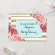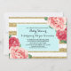 Convites personalizados do chá de fraldas na luz - azul e branco com listras do ouro e a aguarela cor-de-rosa floresce (note por favor o brilho é efeito fotográfico o brilho somente, nao real).