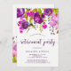 Este convite de festas na moda da aposentadoria caracteriza flores bonito da aguarela em máscaras vibrantes do roxo, e a tipografia moderna de harmonização.