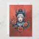 O segredo da beleza pálida, a linda garota japonesa. Seu cabelo está preso num pão elegante, dando a sua aparência um toque gracioso. Um ponto vermelho brilhante é pregado na testa, criando um ponto focal. Seu rosto é intricadamente decorado com padrões azuis e vermelhos, enfatizando sua individualidade e talvez também simbolismo cultural. Ela veste um manto na moda azul e branco que combina harmoniosamente com as cores de seus ornamentos.