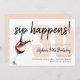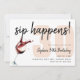 Um modelo aniversário de 30 anos engraçado para as mulheres que apresentam uma pintura aquarela de um copo de vinho tinto e o título "sip acontece!" em um roteiro de caligrafia moderno. Uma aniversário de 30 anos humorística convidando uma mulher no seu aniversário de trinta anos celebrando com uma festa de vinho, numa adega ou restaurante, bistro...