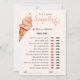 Um Sorvete de aquarela bonito com noivado anel no topo "Ela foi esfregada" Adivinha quem joga Chá de panela Como Jogar: Os convidados adivinham se a noiva ou o noivo disseram as frases listadas. A pessoa com a resposta mais correta ganha.