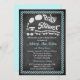 Este convite preto e branco moderno e na moda do chá de fraldas do olhar do quadro do FALSO tem uma beira de listras azuis do aqua pálido com um trem branco do choo-choo com as nuvens de fumo brancas inchado nele que seria perfeito para uma mamãe nova com um filho do bebê introduzir ao mundo. A maioria de texto e o tipo de papel são customizáveis. Mostra-se aqui no papel básico. Eu não usaria o ouro metálico, ou o papel de prata como ambos severamente escurecerão/alteram a cor do cartão. O *** NOTA POR FAVOR que se você muda a pia batismal ou o tamanho da pia batismal, ele pode alterar-se como seu convite imprime. Imprimirá a maneira que você a vê em seu monitor, assim que se você tem edições do alinhamento, ou problemas da cola, contacta-me por favor para a ajuda antes que você peça. Eu não verei seu convite uma vez que você o pede, e Zazzle não editará qualquer coisa (erros tipográficos, alinhamento, etc.). Se você exige o auxílio ou gostaria de quaisquer outros artigos de harmonização, para enviar por correio electrónico por favor seu pedido a niteowlstudio@gmail.com.