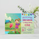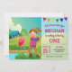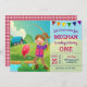 Surpreenda seus convidados com esta festa de aniversário bonito do tema da pesca convidam a caracterização de uma menina adorável com seus primeiros peixes. Adicione simplesmente seus detalhes do evento neste modelo fácil de usar para fazer-lhe um convite um--um-amável. Lance o cartão sobre para revelar um teste padrão vermelho e branco do guingão na parte de trás do cartão.