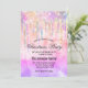 Convite O unicórnio roxo, cor-de-rosa, pia brilho Natal