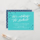 Convide amigos e família para sua festa de formatura com este convite para na moda com as palavras "Vamos Celebrar o Formando" em um roteiro de pincel branco contra um fundo de turquesa com confete branco e azul espalhado nos cantos. A placa tem um padrão abstrato azul e branco no lado traseiro. Personalize-o substituindo o texto do marcador de posição. Para obter mais opções, como alterar a fonte e seu tamanho/cor ou o espaçamento entre letras, clique no botão "Personalizar". *Observe que a Marca d'água Zazzle que aparece na visualização de zoom NÃO aparecerá no produto impresso final © Rosewood e Citrus