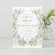 Elegantemente refinado, esse chá de panela rústico apresenta uma delicada coroa de folhas verdes e flores brancas pintadas em aquarelas moles. O convite é adornado com o texto da caligrafia moderna em uma sofisticada matiz verde poeirenta, criando um eterno e um design gracioso. Perfeito para dar o tom de uma celebração memorável.