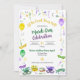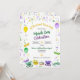 Reúna-se para uma divertida celebração do Mardi Gras. Contas, fitas e flor-de-lis douradas, verdes e roxas em efeito de aquarela estão espalhadas pelo convite. Máscaras de Mardi Gras, um bolo de reis e uma coroa aparecem na parte inferior do convite. O verso repete a imagem das contas. Perfeito para uma celebração do Mardi Gras ou Terça-feira Gorda, um chá de noiva ou festa de casamento com tema Mardi Gras, uma despedida de solteira em NOLA ou uma celebração de aniversário. Disponível com produtos combinando.