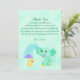 Cartões de agradecimentos personalizados adoráveis do chá de fraldas. Fundo verde do bebê, um elefante do bebê que rega um pato do bebê. Obrigado o sentimento que lê: "Obrigado vindo a meu chá de fraldas e ajudando comemore a próximo chegada de nosso bebê novo. Obrigado para o presente maravilhoso. Suas bondade e generosidade são apreciadas extremamente. Nós olhamos para a frente a introduzir nosso pequeno logo." Todos nossos produtos podem ser projetados para encontrar sem nenhum custo extra suas necessidades. Contacte-nos simplesmente através de nossa loja. Produtos de coordenação disponíveis: Apenas pergunte-nos!