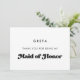 Um cartão de texto simples e elegante que mantém para obrigado sua dama de honra. Um tema retro-chic: adote este design tipográfico ligeiramente vintage e na moda para sua papelaria de casamento, com um tema clássico preto e branco. Cores de texto e planos de fundo personalizáveis.