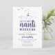 Um aniversário de 30 anos náutico moderno, elegante e chic convidava modelo de fim de semana com impressão de tinta de uma cena de água com ondas oceânicas, barco e gaivotas. Um design divertido, "vamos ganha nauti" para uma aniversariante moderna com modelos nas costas para toda a informação sobre o fim de semana divertido com as raparigas, com a família etc. Uma escolha encantadora para um fim de semana de aniversário de praia, um fim de semana de aniversário costeiro, um lago, um final de semana de aniversário de beberragem ou um fim de semana de aniversário de barco ou iate.
