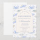 A delicate underwater-inspired design featuring soft watercolor sea animals, gentle ocean tones, and a refined arched layout that frames your details beautifully. The subtle pattern of dolphins, octopus, and sea creatures adds a whimsical yet calming touch, while the minimal center keeps everything clean and easy to read. Perfect for a serene, elegant baby shower with a coastal or ocean theme.