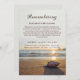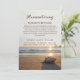 O convite para comemorar e honrar a memória do seu amado. Lembrando é escrito através do convite temático do oceano em um roteiro elegante. Adicione o texto do convite, o nome do seu amado, e detalhes da celebração em fontes elegantes e marrons contra uma foto de uma concha deitada em uma praia.