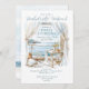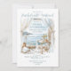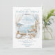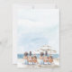 Planeje uma festa de solteira com este convite de fim de semana de bachelorette com aquarela editável, apresentando uma pousada na cena da praia através de uma janela aberta. O tipo é a cor do mar e a parte de trás do convite inclui os foliões da festa sentados na praia. Um estilo perfeito para o seu janto de solteiros do oceano, festa de cocktail e fim de semana de praia.