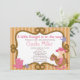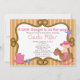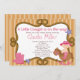 Comece seu chá de fraldas ocidental chique da menina fora do direito com nosso convite pequeno bonito do chá de fraldas da vaqueira. Nosso convite ocidental do chá de fraldas caracteriza o bebê pequeno o mais bonito da vaqueira que veste um chapéu de vaqueiro, botas de vaqueiro e uma fralda cor-de-rosa que monta um cavalo de balanço ajustado em um fundo marrom da listra com uma corda molda a parte traseira de nossas características doces do convite do chá de fraldas do menino do vaqueiro de texas um fundo de coordenação das bolinhas. Visite nossa loja para ver nossa seleção de convites ocidentais do vaqueiro & da vaqueira.