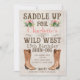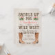 O convite ocidental selvagem do aniversário desta menina caracteriza um par de botas da aguarela, de uma pia batismal do estilo e de um cacto ocidental/arranjos florais em um fundo de papel envelhecido velho. O design igualmente inclui elementos decorativos. Eu quis criar alguns convites ocidentais selvagens da aguarela para a loja porque eu amo este estilo. O convite do aniversário da vaqueira desta menina é apropriado para uma vasta gama de idades que incluem adultos e pode ser usado para uma ocasião diferente. O convite de aniversário selvagem o ocidental desta menina, ocidental ou da vaqueira está pronto para ser personalizado.