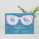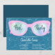 Óculos holográficos da piscina moderna Doce 16 com óculos de sol rosa e giro, cor-de-rosa, e holográficos, sobre fundo de água, a cor pode ser alterada. Um convite de festas de verão legal e divertido