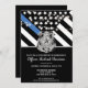 Honre a dedicação e o trabalho de duro de um novo oficial de polícia com este convite de formatura policial personalizável. Apresentando um [crachá policial e a bandeira da polícia com riscas brancas e pretas e uma orgulhosa linha azul fina, esta design simboliza força, serviço e sacrifício. O convite é personalizado com o nome e os detalhes da festa do formando, fazer-o como uma lembrança memorável para amigos, familiares e colegas oficiais. Perfeito para celebrar a graduação, promoção ou marco de uma academia de polícia na carreira de um futuro oficial. Convide seus convidados em estilo e mostre suporte para o membro mais novo da comunidade de linha azul fina.