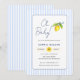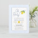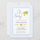 Querida! As listras modernas, azuis e brancas, preferem o convite para o chá de fraldas dos limões mediterrânicos. Perfeito para chá de fraldas alegre e divertido.