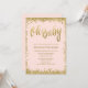 Este elegante modelo de convite de chuveiro de bebê com brilho rosa e dourado falso é perfeito para uma festa de baby shower glamorosa. Um convite único que apresenta uma fonte de pincel moderna e uma borda de brilho dourado chic. Os desenhos são ilustrações/gráficos impressos planos - NÃO É OURO REAL.
