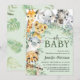Celebrate the upcoming arrival with our "Oh Baby" Safari Baby Shower baby shower invitation! The design features a group of adorable jungle animals and rustic tropical greenery leaves, perfect for a unique safari-themed baby shower. Personalize your invites today and start the celebration!