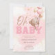 Convite Oh Baby Pink Teddy Bear Balloons Girl Baby Shower
