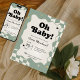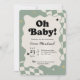 Retro Baby Shower, Oh Baby Invitation, Sage Green Checkered, Wavy Border Invite, 70s Style Baby, Modern Groovy Shower, Gender Neutral Retro, Checkered Pattern, Trendy Baby Shower, Sage Green Invitation, Starry Baby Shower, Groovy Baby Theme, Vintage Style Invite, Cool Baby Shower, Minimalist Retro