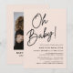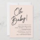 Simples convites para chuveiros de bebês com "Oh Baby!" exibido em um roteiro negro e ousado com um fundo de blush. Personalize os convites minimalistas para chuveiros de bebês com o nome e os detalhes do chá da mãe. O chuveiro de bebê embaçado convida ao contrário para exibir sua foto de gravidez e texto personalizado.