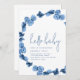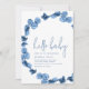 Se você ama um estilo simples de boho, este convite é certo para você. O convite apresenta um design elegante, com fundo branco e macio, com folhas azuis delicadas ao longo das bordas. No centro, os detalhes do partido são lindamente escritos num texto azul que exumenta um ar de sofisticação. Convide convidados para a sua festa de chá de fraldas em estilo. A cor e o texto em segundo plano são editáveis.